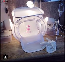 Great lighting box. I take a lot of photos of food and I wanted to bring the photos to the next level by getting a lighting box. I felt like this lighting box really help me with that. I purchased the 12 x 12 size and it's small enough to not get in the way. Any bigger may be inconvenient. It comes with four backgrounds fabrics that can be velcroed onto the lighting box. It comes with the colors, red, black, white, and blue. You'll need to iron them out a little for a smooth background. Stand and lighting are not included. I've read a lot of reviews on the other lighting boxes that came with lightning, but most people said they ended up throwing them out and what not and using lights they at home. So I decided to just use desk lamps I had at home already and save some money. I placed lighting on both sides of the box and one on top. This box is only big enough to take photos of small items like a small plate of cookies. I'm still practicing my photography but so far I really love this lighting box. I dont know how to take down the box but don't really feel like breaking it down and opening it up, setting up the lights everytime I want to use it. So it sits on one of my nighstands with the lights in place ready for whenever I want to take pictures.