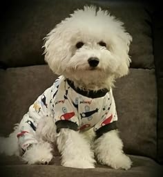 Oh my goodness! This is the cutest thing!? Little airplanes and cozy fabric. We ordered a size Small for our 7lb Yorkie LG (Little Guy) who gets cold easily in the winter and we wanted him to be warm and cozy without feeling bulky. This item fits the bill perfectly. Because its a light fabric he loved it except when he walked he seemed annoyed by the elastic under the rear legs. So, I snipped the elastic but then it was too big and dragged over his little feet!! Finally, I tried it on our 8lb Maltese (Gracie) who is a little taller and she LOVES IT! Girls can rock airplanes too! Here's a picture of her snuggled - Gracie aka Amelia!