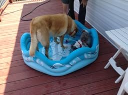 My dogs both like this pool they had a lot of fun on those hot days , it was very well packaged and was very fast to deliver , I had a problem with my first one but it was quickly resolved and I was happy .i have a 7 lbs shihpoo and an jelly lab and they were both in it at the same time ,.Thank you