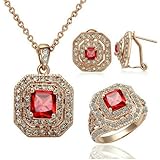This was a birthday gift and not received directly by me. The recipient was thrilled and called me straight away to thank me for such an extravagant gift! I had her send me pictures so I could write an informed review. It all looked very lovely. My only caveat, minor though it may be, is that each piece arrived in separate plastic bags instead of being placed in a nice jewelry gift box. Other than that, we are totally delighted with this set. I will update this review in future, if necessary.