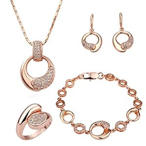 Women Alloy Base Rose Gold Palted Necklace, Earrings, Ring and Bracelet Wedding Jewelry Sets