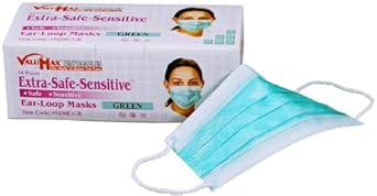 This item: ValuMax 5430E-GR Extra-Safe-Sensitive Disposable Earloop Face Masks, Cellulose Inner Layer, High Filtration, Green, Box of 50