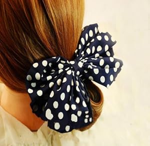 Hey ladies, I wanted to present some pictures for those of you interested in purchasing this hair-tie. I'm a Nursing Student and our scrubs are navy blue, so that is the color I ordered this in. Should you be interest in this color, I think it would be important to take note of my photos I am sharing with you. While you can see it is blue-tinted, it does appear darker than in the photo. So, do keep that in mind. I still love it, its adorable and really inexpensive. You can't really complain, it's really a sweet deal. I would say it probably fits better on thin hair. However, if your are like myself and have curly hair, and are using it for decoration, go ahead and put it over a sturdy elastic. I don't think it can secure around too much thickness. I photographed the packaging and the product straight out of the wrappers. I will say, that because of its travel, you may need to fluff your bow up a bit. Thats about it, I hope this review helps in your decision, be aware that you may have to be patient on your order as it does travel quite some distance to you. Good Luck to you all and thank you kind seller!