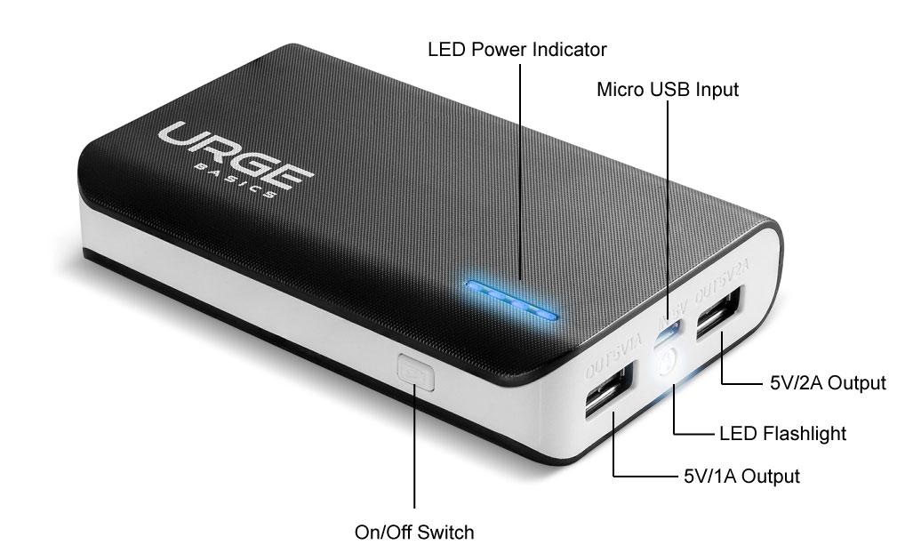 This item: URGE Basics 6,000mAh Powerbank with Dual USB with LED Flashlight - Retail Packaging - White
