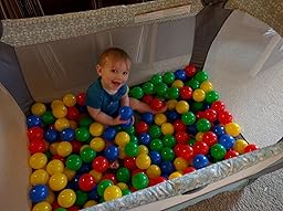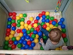 The big question when buying ball pit balls is how many you'll have to buy to really enjoy it. This 100 count package covered about 75% of the bottom of our pack and play. For a small child to be able to 'swim' in the balls, you'd need at least 3 or 4 of these packages.
