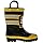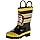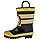 • Striped rain boot in firefighter motif featuring easy-on pull handles and grippy treaded outsole