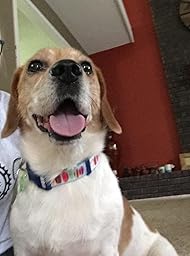 I love macaroons so when we rescued our beagle/basset mix I had to get this for him. Charles looks super cute in it! He weighs about 23 pounds and the medium adjusts well to his size. I bought the leash to match, and I wish they had a harness in this pattern.