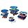 • Set contains 27 microwavable containers, in various shapes and sizes, with matching blue lids