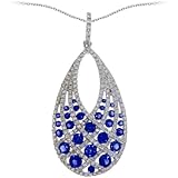 • Sterling Silver White and Montana Blue Swarovski Elements Crystal Open Teardrop Pendant Necklace, 18"
