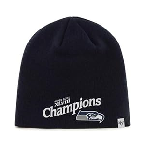 • Seattle Seahawks 47 Brand Super Bowl XLVIII Champions Navy Winter Beanie Cap