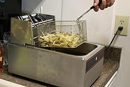 I got the three fryers to use at home and work at the firehouse. The smallest of the three fryers or fryer #1 is the ARKSEN© 2500W 6-Liter Electric Countertop Deep Fryer Adjustable Temp was to be kept at home. It’s about twice the size of the presto grandpappy and set up a lot better. This one holds 6 L of oil or 1.585 Gal of oil. I really do like the temp control for various items to fry. I also like the drop basket for frying rather than using a spider for retrieving your food. The amount of food you can fry is impressive. I also like the French fry scoop its kinda cool and novelty like. The cleaning pads are a normal scouring pad with Chinese type writing. The instruction manual is easy to understand and read. I hope to post pictures from dinner at the house as soon as possible. I therefore give this fryer 4 out of 5 stars.