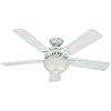 • Hunter Fan Company 53125 Bridgeport 52-Inch ETL Damp Listed Ceiling Fan with Five White Plastic Blades, White