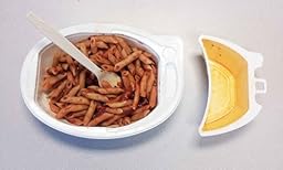 After only one minute in the microwave you pull it out, and then remove the top film entirely. THIS IS WHERE I NEARLY HAD A MEGA-DISASTER! I pulled the plastic cover back, starting at the end where I had already pulled the plastic back to allow venting, and I had to apply a fair amount of pressure because the plastic was attached quite firmly. At this point I did not know that the sauce bowl and the pasta bowl were not connected, and as I pulled back the plastic it came free of one end of the sauce bowl before the opposite edge. The pasta bowl pulled up and nearly spilled all over the counter, but luckily it didn't. That was CLOSE!