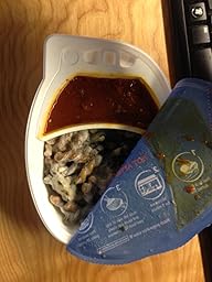 I kind of expected it to be gross because it was too easy, but I dare say it was tastier than most pre-packaged meals I've tried. The pasta has really good texture--it's not mushy and doesn't get "hard" like a lot of frozen pastas do if they get nuked without sauce on them. The sauce is pleasant and you can see bits of ground beef something-or-other in it, and I even saw chopped garlic in it. There's something a little disturbing about eating non-refrigerated ground beef, like...it's probably the first technological step toward the zombie apocalypse or the creation of Big Foot, but at least we'll have palatable non-perishable food to eat during the end of the world.
