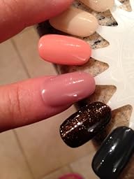 This color is so pretty. It is defiantly a berry Red. The actual color is a little darker than the picture on my computer screen. It goes on very smoothly and is not at all thick. Just like any regular or gel polish I have used in the past. It went on very well with two coats which again is what I would expect with any other of the gel polishes.