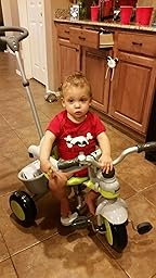 I will say that I wish this tricycle had 2 things: 1) a cover of some sort (like the Radio Flyer one) because we live in Arizona, and the sun is brutal. 2) Some sort of a try for his juice cup or snacks (like the Radio Flyer one) because otherwise he throws his cup on the ground. The container in the back is nice, but he can't reach it. He tries to, but he can't quite reach.