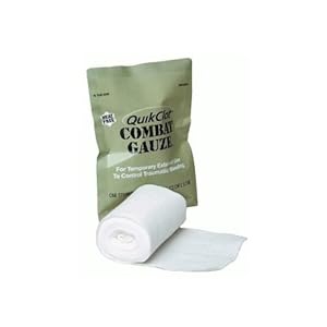 QuikClot® Combat Gauze(tm) is a soft, white, sterile, nonwoven 3" by 4 yds rolled gauze impregnated with kaolin, an inert mineral that does not contain animal or human proteins or botanicals. Each roll of QuikClot Combat Gauze is individually wrapped in an easy rip, military grade foil pouch. Indicated for temporary external control of traumatic bleeding, QuikClot Combat Gauze is flexible and pliable and contours to all wounds. Recommended as the number one hemostatic agent by the COTCCC (Committee on Tactical Combat Casualty Care Committee), QuikClot Combat Gauze is the only product carried by all branches of the US Military to control life-threatening hemorrhage.