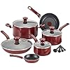 T-fal C912SE / C514SE Excite Nonstick Thermo-Spot Dishwasher Safe Oven Safe PFOA Free Cookware Set, 14.5-Piece, Red