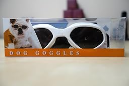 These dog sunglasses/goggles provide great protection to my dogs eyes. Not only are the lenses shatterproof, they also provide UV protection.