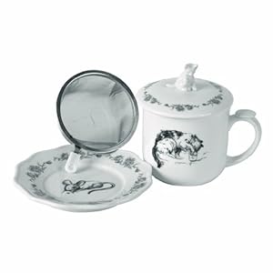 • Creative Co-Op Stoneware Tea Strainer Mug with Saucer and Cat Lid