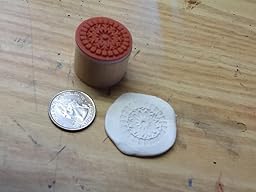 These stamps are great for stamping in air dry clay. I bought them to use at an essential oil make n take party I hosted at my house. One of the projects was making clay diffuser necklaces and these were perfect for creating the designs to stamp on the front. A few were not as "raised" and were harder to make the impression of, but overall I was very satisfied. They are also easy to clean and have lasted through several more clay stampings since that class. If you're trying to imagine the size, they are slightly smaller than the cap on a milk jug.
