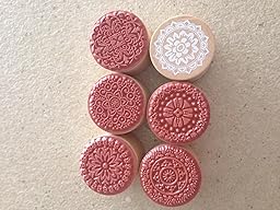 • Decora 6pcs Floral Pattern Round Wooden Rubber Stamp