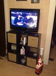 I use this as a tv stand in my living room. My 32 inch flat screen fits great on it. I did have to anchor it into the wall for stability. But so far so good. I've had this about 2 weeks or so. I plan on ordering two more. I put the bins differently than most. I wanted the backing to be empty for my DVD players and such. Works out great!