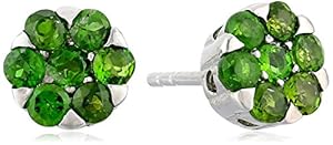 • Sterling Silver Gemstone and Created White Sapphire Halo Stud Earrings