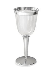 Disposable Plastic Wine cups, clear w/ silver base and rim