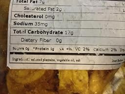 These are very good banana chips and the bag is large and a good value for the price. I wish they would put more salt on banana chips. I know that salt is supposedly not healthy, but I don't eat these for my health. I eat them because I like them. I would like them better with more salt.
