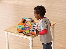 • Kids music toy teaches pretend play, instruments, creativity and music; explore a variety of sounds including drums, a scratch disc and a whammy bar
