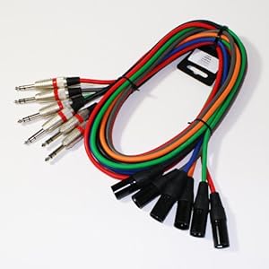 EMB - 6XM6Q6F16G - PACK of 6 Color Coded 6ft. XLR Male to 1/4 Stereo TRS Male 16GA Cables Adapters for Home DJ Club Studio Stage Show Entertainment