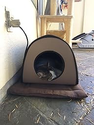 I thought my outdoor cat would not use this at first... and he didn't. But after I literally (and gently) pushed him inside (where it was AMAZINGLY cozy), he didn't want to get out! I was very concerned about the winter weather, especialy alarming when you have a a cat that just cannot come inside. This was the PERFECT solution. Easy to put together, pretty well camoflaged with a beige color, it even has a sturdy, removable plastic flap on the front so the heat does not escape on cold nights. Now that the weather is warmer, we have unplugged it and he's happy to continue using it for shelter at night on the porch. Extremely happy that I purchased this product!