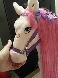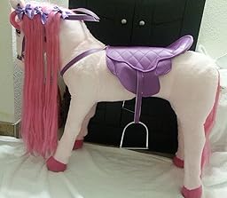 Let me start by saying this horse is beautiful! The horse is exactly as shown in picture and in my opinion more beautiful in person. Soft plush fur with firm steady frame. I (140lbs) sat on horse with no problem. Sings when you press ears and makes realistic horse sounds when you pull up on reins. Also makes galloping noise when you press on back end. Saddle is attached and does not come off. My only complaint is the hair on horse is thin and sheds very easily. I bought this horse for my daughter for Christmas and she will absolutely love it! ! I would recommend to anyone with a little girl. This is a beautiful horse and made very well. Price is great for such an outstanding gift. Would buy again and again! !