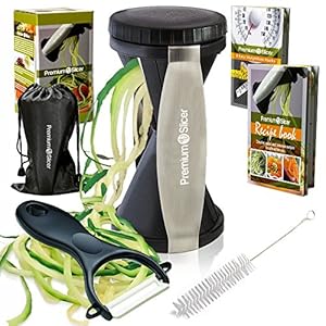 • SUPERIOR BUNDLE - Your Complete Spiralizer Bundle comes with a premium storage bag, cleaning brush and a physical recipe book, which is chock-full of creative yet easy recipes that will brighten any family dinner table.
