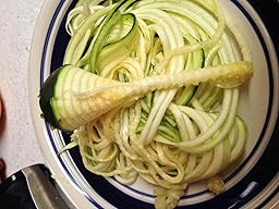• LOTS OF VARIETY - It's fun, quick and easily to makes stir-fries, salads, and even vegetable pasta. You will be able to create NOODLES and JULIENNE SPIRALS from a great variety of vegetables including Carrots, Zucchini, Cucumbers, Squash, Radish, Sweet Potatoes, Regular Potatoes and much MORE.