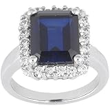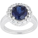 This lovely Ring feature white diamonds and Blue Sapphire in shared prong setting. All stones are sparkling and 100% natural. All our products with FREE gift box and 100% Satisfaction guarantee. Blue Sapphire is very dark blue in color - Color varies from photo. SKU # K1453
