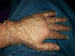 These gloves are really "Great". I like them better than latex or rubber because they are more sturdy. They don't stretch like rubber, but the vinyl feel is nice. I like these gloves a lot. I thought ordered large and got XL (X-Large). Sizes range from XS to XXL. I included a picture of the back of the box with a measuring scale. It may help you in deciding what size to buy. I wear a size 10 ladies ring and took pictures of my hand wearing XL gloves. I hope it helps you in deciding what size to order. They also arrived fast!
