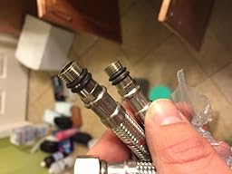 The hoses that come with the faucet are not installed into the faucet. When you try to install it yourself you realize that you have no way of tightening the hoses.