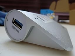 The Aukey 4-Port USB 3.0 Aluminum Desktop Hub is an attractive design which positions the 4 ports on a slant where it's easier to insert the plugs for your devices. The ports are positioned so that even wider drives will not encroach on the space of the other devices plugged into the hub.