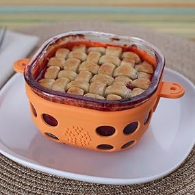 • Tempered glass containers and silicone sleeves on are oven, microwave, freezer, and dishwasher safe