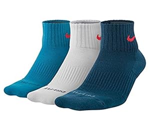 Nike Unisex Dri-fit Cushion Quarter 3 Pack Blue Lacquer/crimson/white Lg (M Shoe 8-12, W Shoe 10-13)