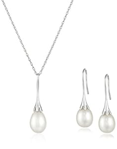• Sterling silver pendant necklace and dangle earrings featuring freshwater cultured pearl drops