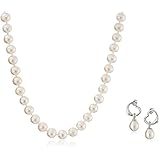 This item: Sterling Silver and Freshwater Cultured Pearl Pendant Necklace and Earrings Jewelry Set (8 mm)