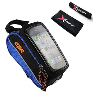 Nexify Cycling Bike Bicycle Frame Pannier Front Tube Bag Case for Cell Phone Waterproof + Bike Chainstay Protector (Blue)