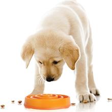 I bought this for an obese Corgi who is the greediest dog alive. He's always on a diet, and right now only gets 3/4 of a cup of diet kibble twice a day. He usually finishes it up in forty-five seconds. I timed him the first time I fed him in this dish, and it took him more than five minutes! Plus, he got up and moved around as he ate, instead of laying there like a lump with the dish between his paws. I've tried other slow-feed bowls, and they only work for a few days -- until he learns to tip them over. I don't think he'll be able to master that skill with this design. If he does, I'll revise my review accordingly.