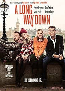 Very hard to stomach dramedy about four mismatched souls who meet on New Year's Eve on the top of a building that is a popular suicide spot--instead of killing themselves they become intertwined in each other's lives in ways that are never completely believable. When you use a four person suicide attempt as a cute meet you are starting off in a rather deep hole and A Long Way Down never finds its way out.