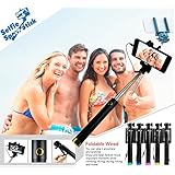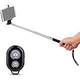 • Selfie Stick Monopod with Bluetooth Remote, iOS and Android compatible - With luxury pouch - Color: Black