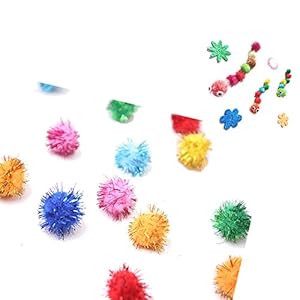 These little pom pom balls are my cat's favorite toy. He only plays with these, and it was nice to be able to order a package that solely contained the larger size. My cat chews on them, so we got through them fairly quickly, but they are nice and while they do shed a little bit of sparkly pieces, it isn't nearly as much as you would think.