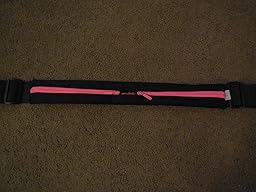 I absolutely love this running belt. First, I love that it came in pink and I haven't seen a lot of other running belts in pink that I liked. I don't want a solid pink belt, but this is just enough color to make it attractive. It also comes in Yellow, Black and Blue. The belt and strap is 2 inches wide (not when the pockets are expanded). When adjusted to the smallest size the belt is about 30 1/2 inches without stretching the elastic. When adjusted to the largest size it is about 38 inches without stretching the elastic and at least 50 inches when the belt is stretched out.